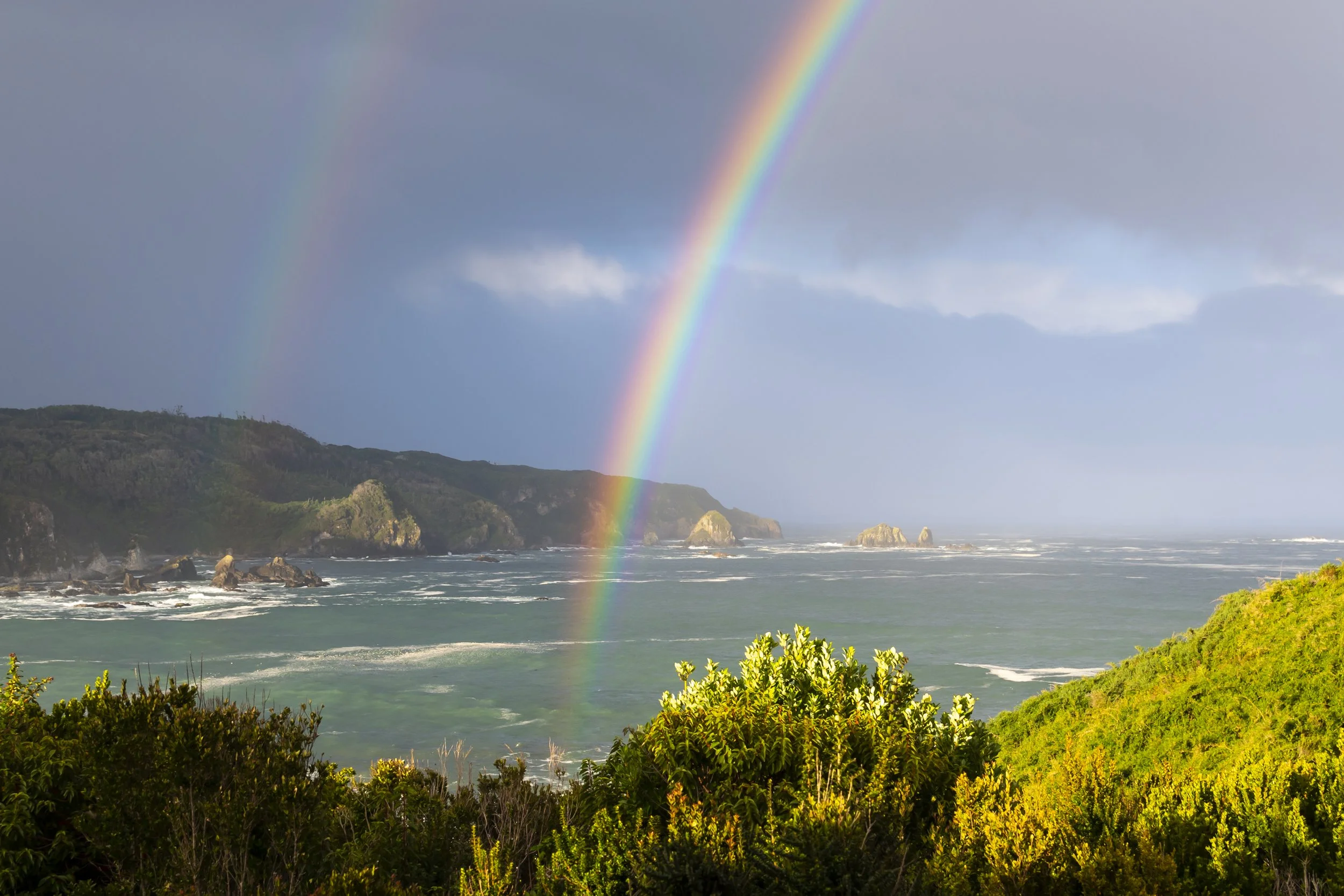 Down here on the surface, the perspective is different. Roads lead everywhere. The towering trees cast the shadows, as do the buildings. And the rainbows stretch from horizon to horizon, still adding a bit of magic and mystery. We can only see a small bit of Earth at a time. Here, life is abundant. Here the world is small. Here the Earth rises grandly before us in the sight of a mountain. Here the vastness of the ocean is as small as that stretch of beach, a bit of coastline. Here our senses are filled beyond imagination with the richness of the sensual world.